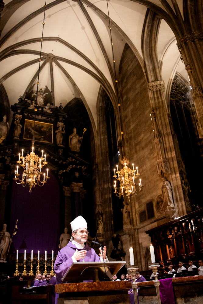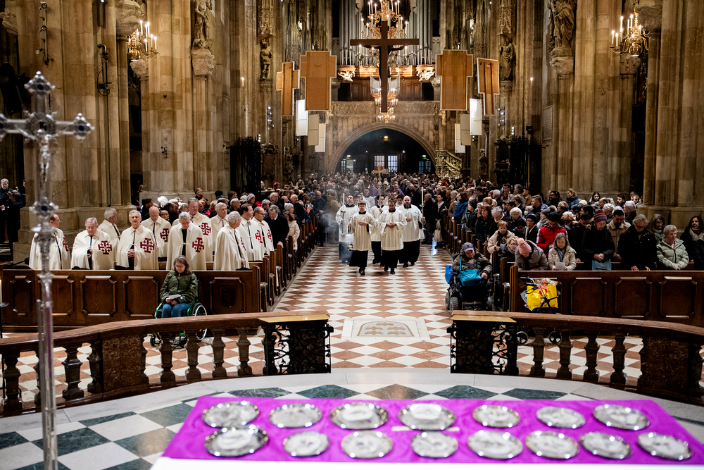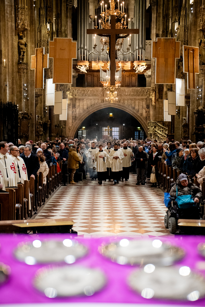 Erzdiözese Wien/Stephan Schoenlaub / Spendung des Aschenkreuz
