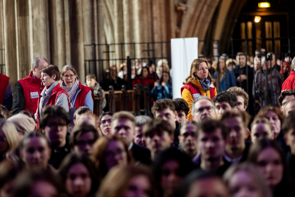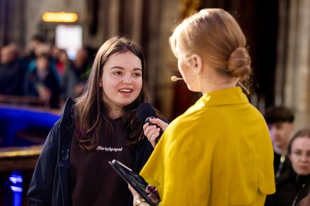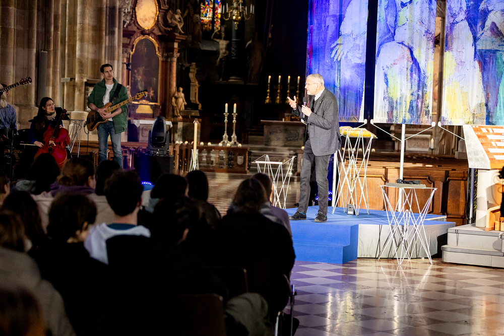„Gottes Lächeln über mir": Unter diesem Motto stellten am Dienstag, 8. April 2025, über 500 Maturantinnen und Maturanten ihre bevorstehenden Prüfungen bei der ökumenischen Segensfeier „BE BLESSED!" unter den Segen Gottes. Wir waren mit der Kamera dabei.