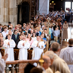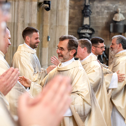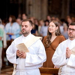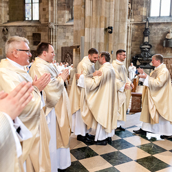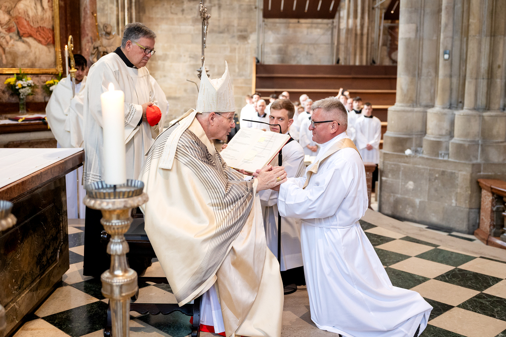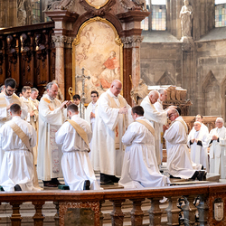 Am 14. Juni 2025 wurden fünf Diakone der Priesterseminare Wien und Redemptoris Mater im Wiener Stephansdom durch Kardinal Christoph Schönborn OP zu Priestern der Erzdiözese Wien geweiht. Wir waren mit der Kamera dabei.